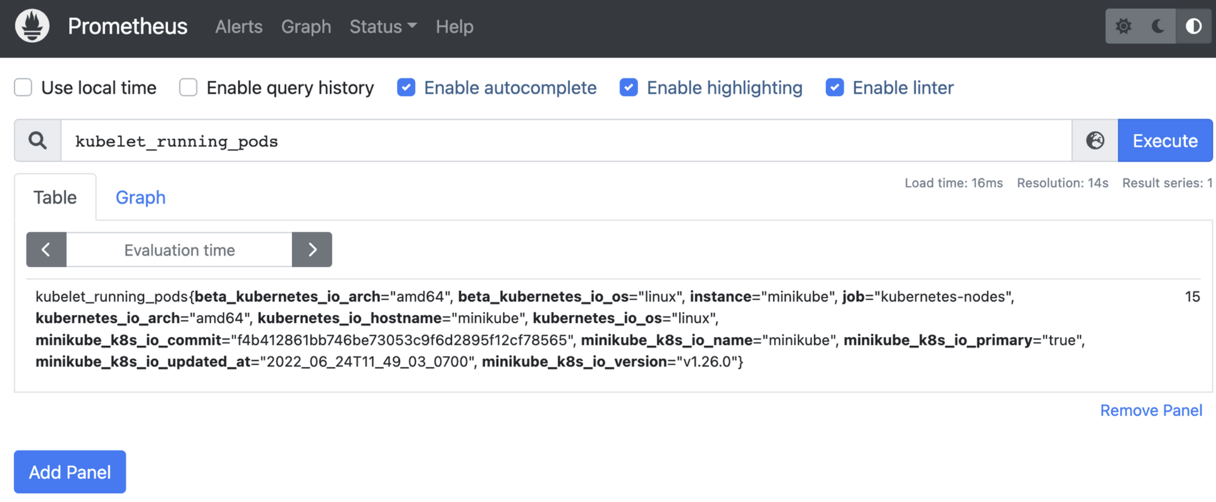 제대로 연결되었는지 확인하기 위해 kubelet_running_pods 실행