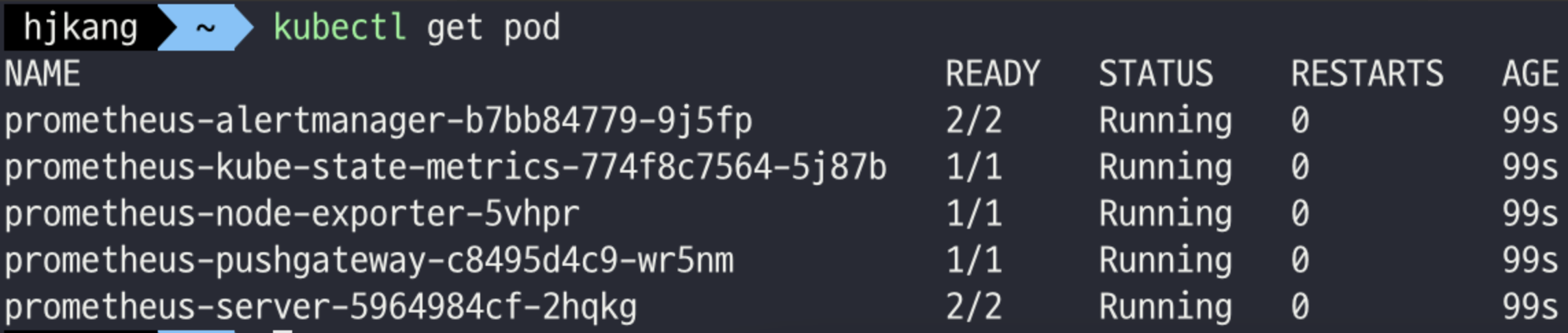 helm install prometheus prometheus-hjkang/prometheus