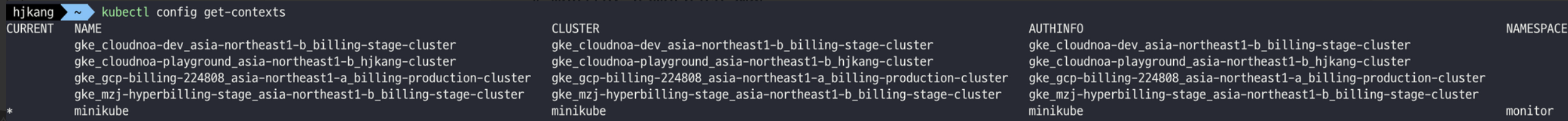 kubectl config get-contexts