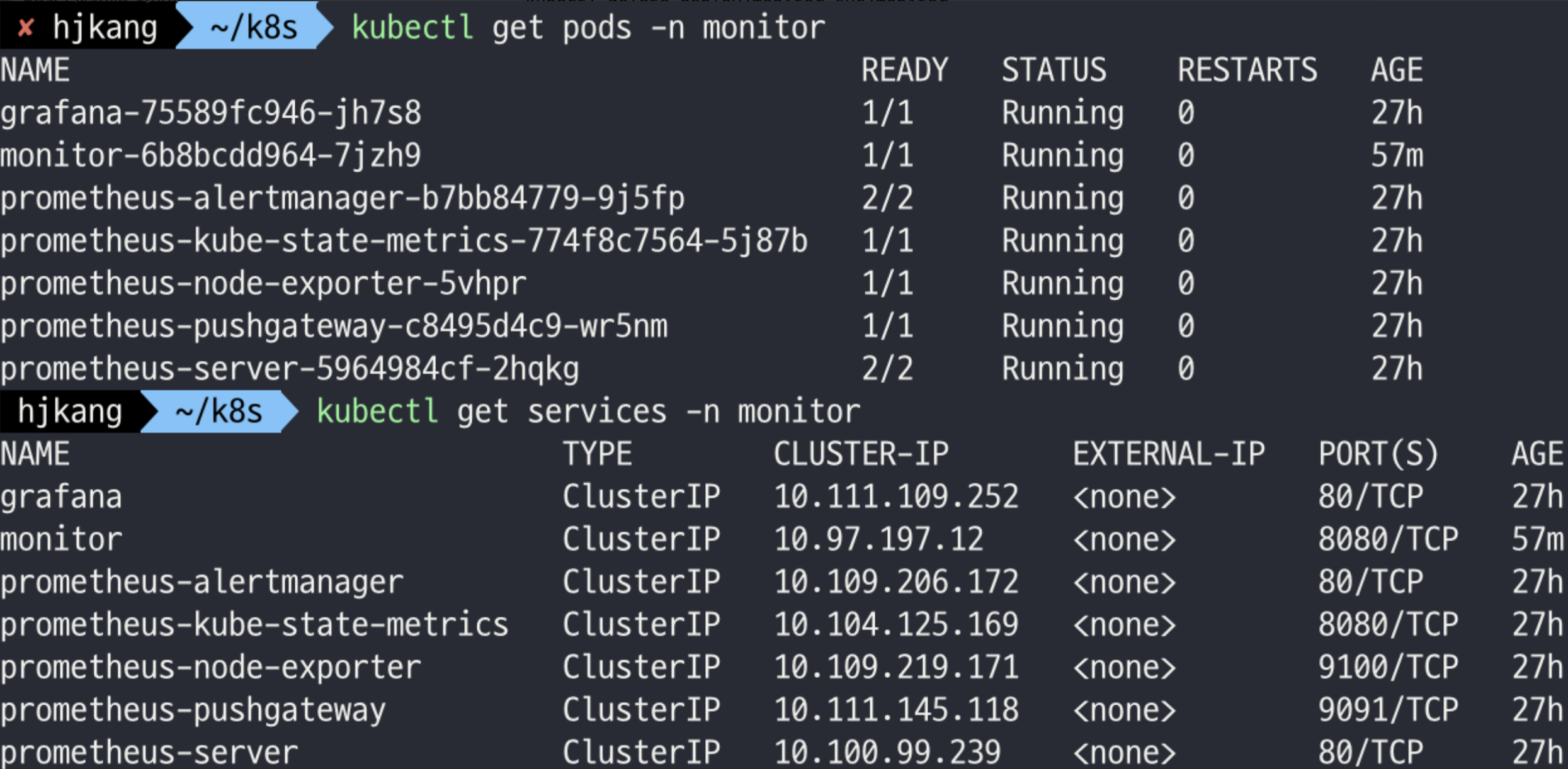 kubectl get pods -n monitor