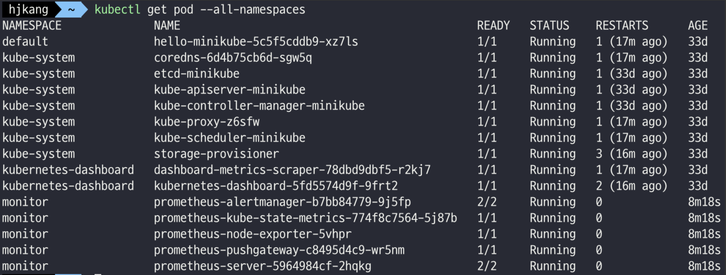 kubectl get pod --all-namespaces