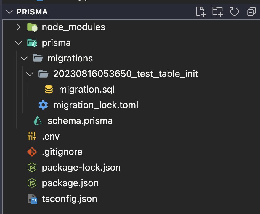 - 명령 실행 시 prisma/migrations 하위에 마이그레이션 히스토리 파일 생성됨