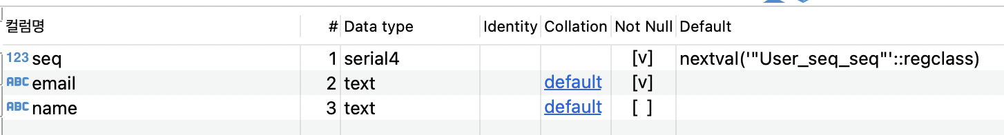 DB에서 생성된 User 테이블 확인